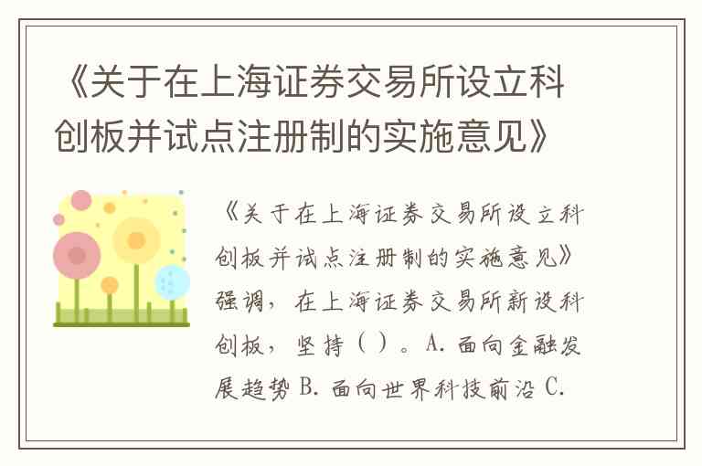 《关于在上海证券交易所设立科创板并试点注册制的实施意见》强调,在上海证券交易所新设科创板,坚持()。A.面向金融发展趋势 B.面向世界科技前沿 C.面向经济主战场 D.面向国家重大需求