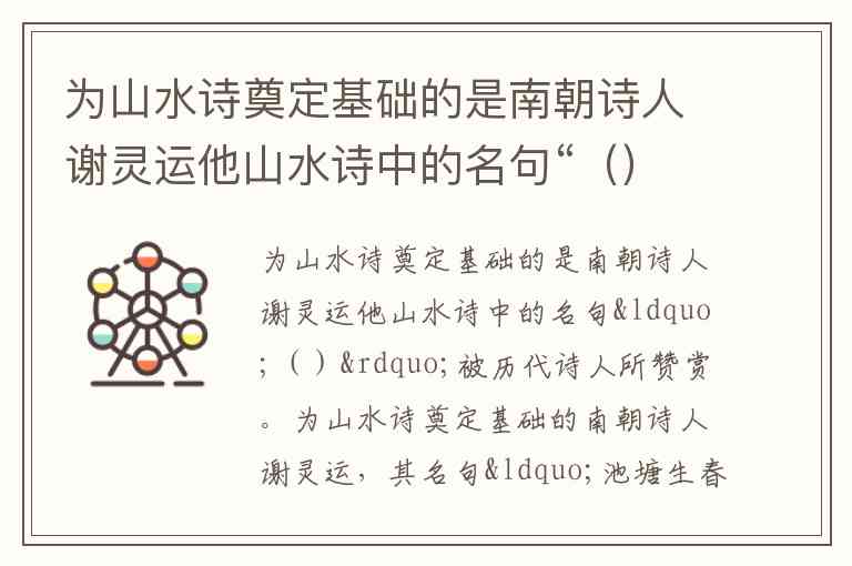 为山水诗奠定基础的是南朝诗人谢灵运他山水诗中的名句“()”被历代诗人所赞赏。