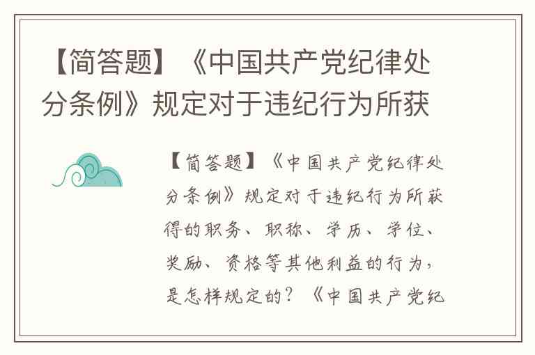 【简答题】《中国共产党纪律处分条例》规定对于违纪行为所获得的职务、职称、学历、学位、奖励、资格等其他利益的行为,是怎样规定的?