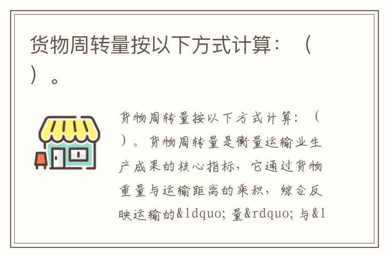 货物周转量是衡量运输业生产成果的核心指标,它通过货物重量与运输距离的乘积,综合反映运输的“量”与“距离”双重维度。计算公式为 货物周转量=实际运送货物吨数×货物平均运距,单位通常为“吨公里”,海运则常用“吨海里”(1海里=1.852公里)。例如,运输100吨煤炭行驶500公里,其周转量即为100×500=50,000吨公里。