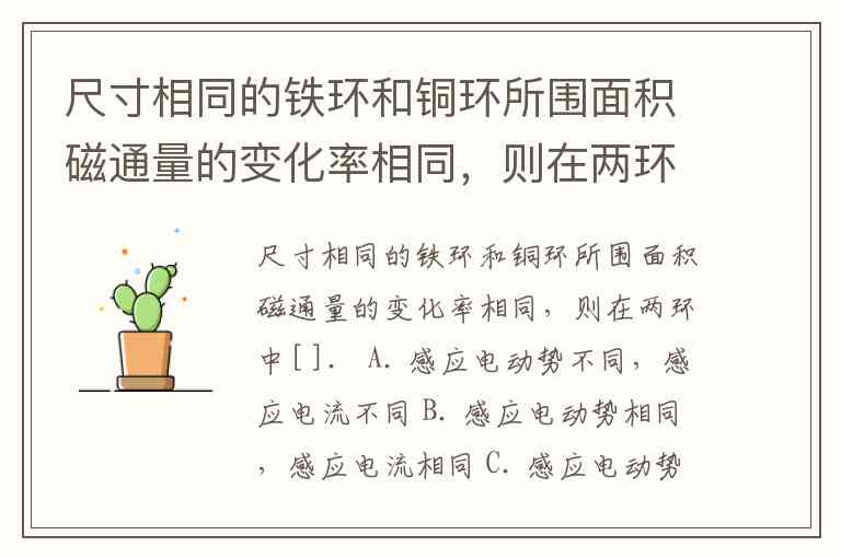 尺寸相同的铁环和铜环所围面积磁通量的变化率相同,则在两环中[ ]. A. 感应电动势不同,感应电流不同 B. 感应电动势相同,感应电流相同 C. 感应电动势不同,感应电流相同 D. 感应电动势相同,感应电流不同