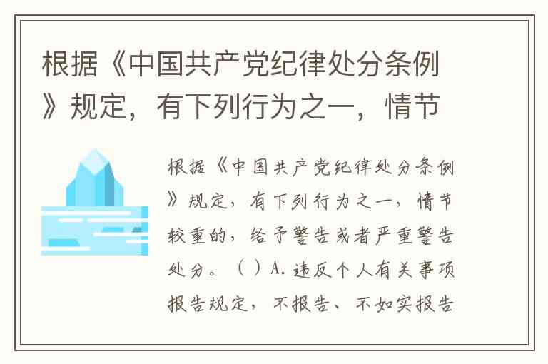 根据《中国共产党纪律处分条例》第八十一条规定,A、B、C选项的行为在情节较重时均应给予警告或者严重警告处分,而D选项属于性质更严重的独立处分情形。具体分析如下: