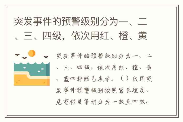 突发事件的预警级别分为一、二、三、四级,依次用红、橙、黄、蓝四种颜色表示。()