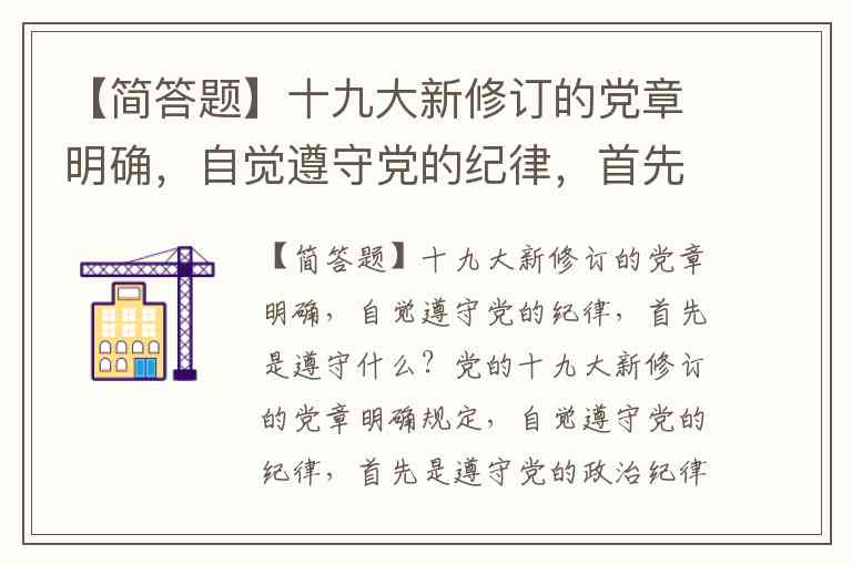 【简答题】十九大新修订的党章明确,自觉遵守党的纪律,首先是遵守什么?