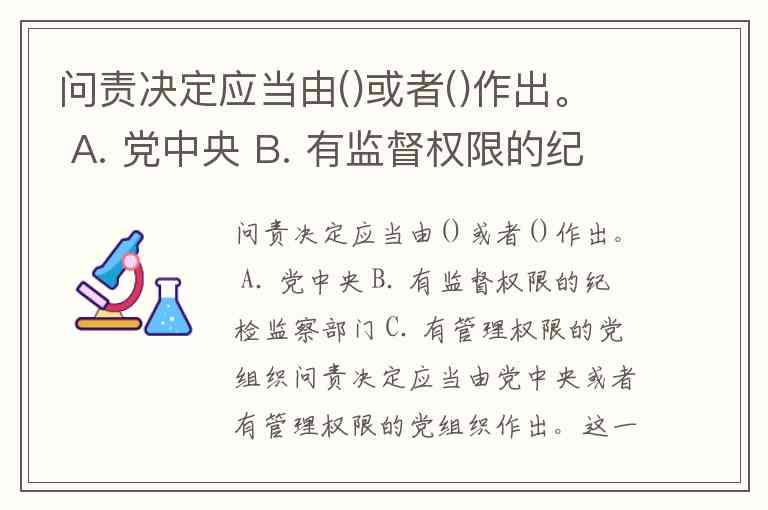 问责决定应当由()或者()作出。 A. 党中央 B. 有监督权限的纪检监察部门 C. 有管理权限的党组织