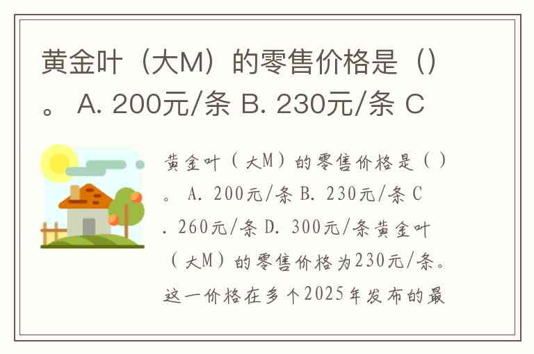 黄金叶(大M)的零售价格是()。 A. 200元/条 B. 230元/条 C. 260元/条 D. 300元/条