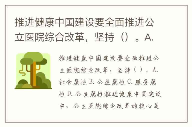 推进健康中国建设要全面推进公立医院综合改革,坚持()。A.社会属性 B.公益属性 C.服务属性 D.公共属性