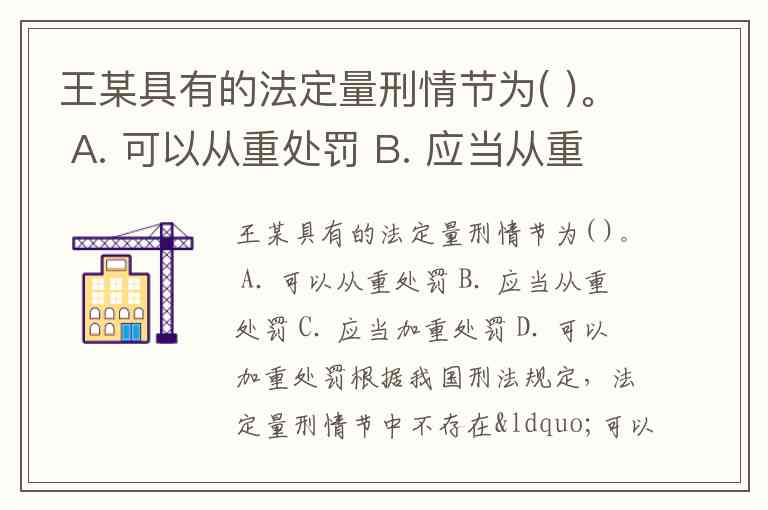 王某具有的法定量刑情节为( )。 A. 可以从重处罚 B. 应当从重处罚 C. 应当加重处罚 D. 可以加重处罚