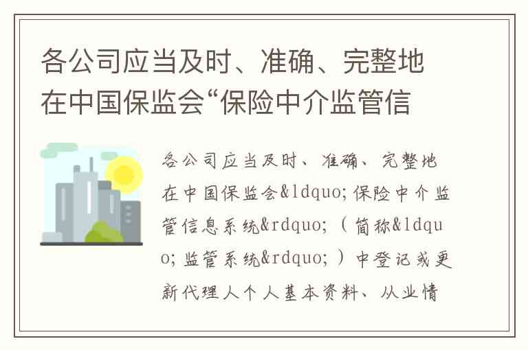 A. 正确。根据中国银保监会多项监管规定,保险公司和保险中介机构需在保险中介监管信息系统中及时、准确、完整登记代理人的基本资料、从业情况、培训教育及奖惩信息,并确保该系统与公司内部人员管理系统的数据一致性。