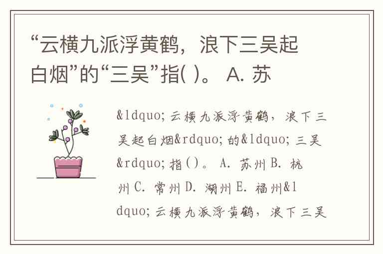 “云横九派浮黄鹤,浪下三吴起白烟”的“三吴”指( )。 A. 苏州 B. 杭州 C. 常州 D. 湖州 E. 福州
