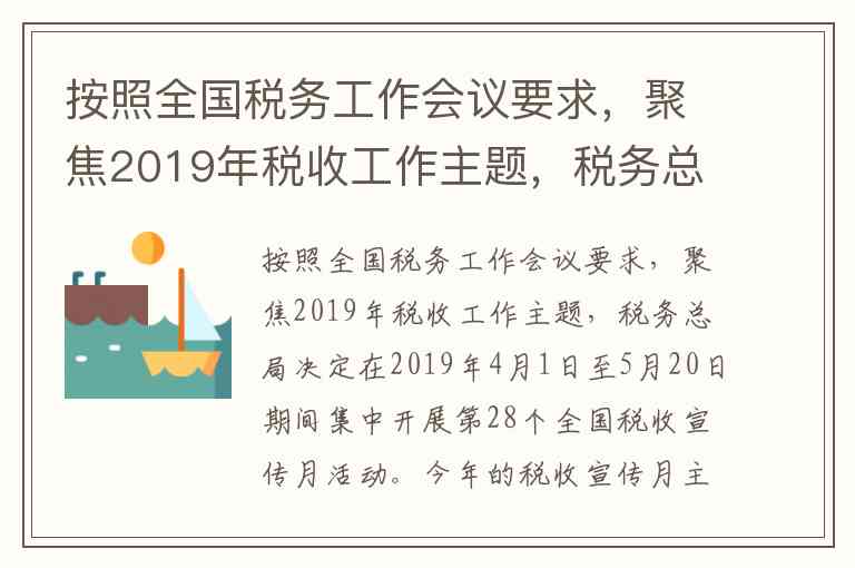 按照全国税务工作会议要求,聚焦2019年税收工作主题,税务总局决定在2019年4月1日至5月20日期间集中开展第28个全国税收宣传月活动。今年的税收宣传月主题是什么?