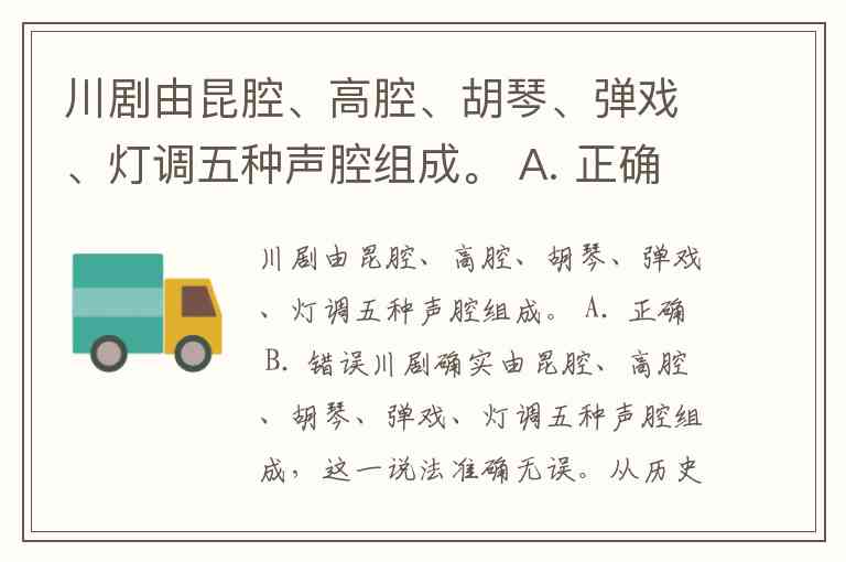 川剧由昆腔、高腔、胡琴、弹戏、灯调五种声腔组成。 A. 正确 B. 错误