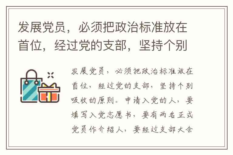 发展党员,必须把政治标准放在首位,经过党的支部,坚持个别吸收的原则。申请入党的人,要填写入党志愿书,要有两名正式党员作介绍人,要经过支部大会通过和上级党组织批准,并且经过预备期的考察,才能成为正式党员。( )
