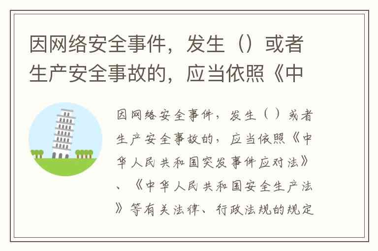 因网络安全事件,发生()或者生产安全事故的,应当依照《中华人民共和国突发事件应对法》、《中华人民共和国安全生产法》等有关法律、行政法规的规定处置。A. 突发 B. 事件 C. 突发事件 D. 时间