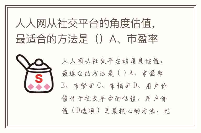 人人网从社交平台的角度估值,最适合的方法是()A、市盈率 B、市梦率 C、市销率 D、用户价值