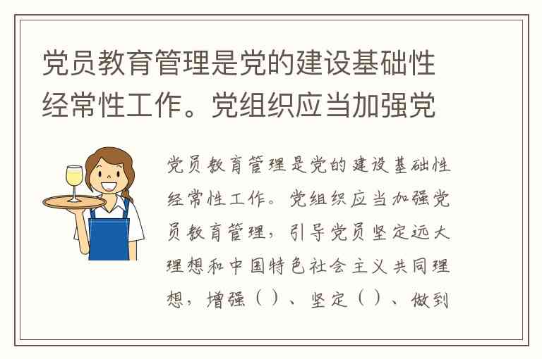 党组织应当加强党员教育管理,引导党员坚定共产主义远大理想和中国特色社会主义共同理想,增强“四个意识”、坚定“四个自信”、做到“两个维护”,这一表述源自《中国共产党党员教育管理工作条例》的明确规定,是新时代党员政治建设的核心要求。其中,“四个意识”即政治意识、大局意识、核心意识、看齐意识,要求党员始终在思想上政治上行动上同党中央保持高度一致;“四个自信”包括中国特色社会主义道路自信、理论自信、制度自信、文化自信,是坚定理想信念的根本依据;“两个维护”指坚决维护习近平总书记党中央的核心、全党的核心地位,坚决维护党中央权威和集中统一领导,是党的政治建设的首要任务。