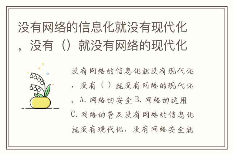 没有网络的信息化就没有现代化,没有()就没有网络的现代化。A.网络的安全 B.网络的运用 C.网络的普及