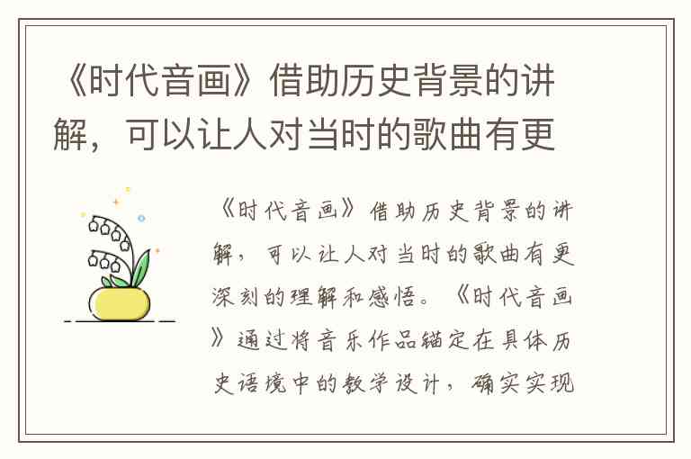 《时代音画》借助历史背景的讲解,可以让人对当时的歌曲有更深刻的理解和感悟。