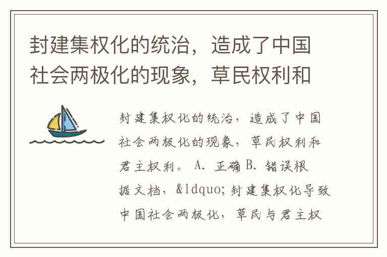 封建集权化的统治,造成了中国社会两极化的现象,草民权利和君主权利。 A. 正确 B. 错误