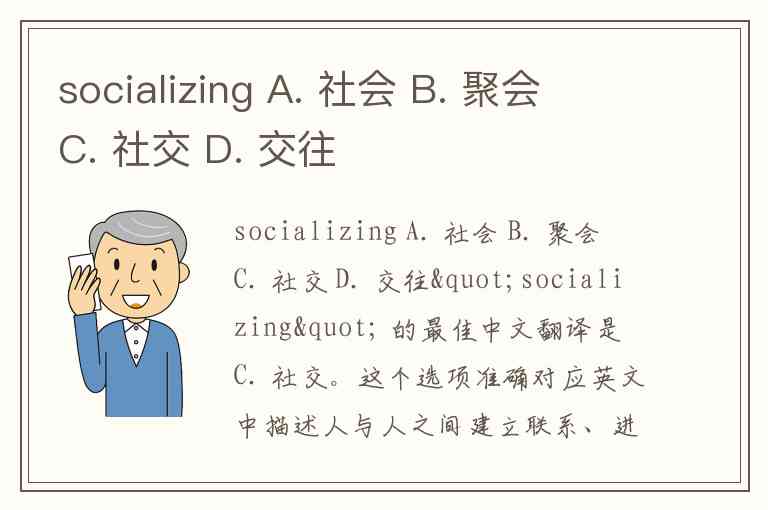 socializing A. 社会 B. 聚会 C. 社交 D. 交往