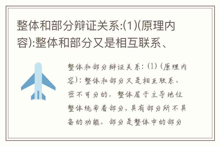 整体和部分辩证关系:(1)(原理内容):整体和部分又是相互联系、密不可分的。整体居于主导地位整体统率着部分,具有部分所不具备的功能。部分是整体中的部分,离开了整体,部分就不成其为部分。整体的功能、状态及其变化也会影响部分。(方法论):我们应当树立全局观念,立足于整体,统筹全局,选择最佳方案,实现整体的最优目标,从而达到整体功能大于部分功能之和的理想效果;(强调整体)(2)(原理内容):整体是由部分构成的,离开了部分,整体就不复存在。部分的功能及其变化会影响整体的功能,关键部分的功能及其变化甚至对整体的功能起决定作用。(方法论):必须重视部分的作用,搞好局部,用局部的发展推动整体的发展。(强调部分) A. 人们对文化的需求呈现多层次、多样化的特点 B. 人们真正需要的是高雅文艺,而非通俗文化 C. 春晚应该充分反映优秀传统文化,而不是创新 D. 办好春晚应坚持以我为主,不能迎合观众需求