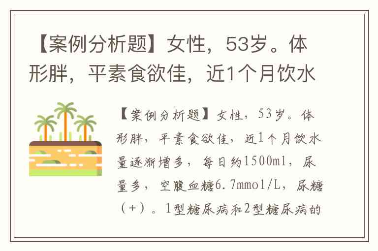 【案例分析题】女性,53岁。体形胖,平素食欲佳,近1个月饮水量逐渐增多,每日约1500ml,尿量多,空腹血糖6.7mmol/L,尿糖(+)。1型糖尿病和2型糖尿病的鉴别要点不包括()。A.病因 B.家族史 C.体重 D.自身抗体 E.性别 F.血糖高低