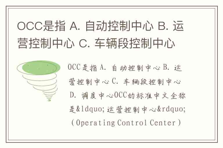 OCC是指 A. 自动控制中心 B. 运营控制中心 C. 车辆段控制中心 D. 调度中心