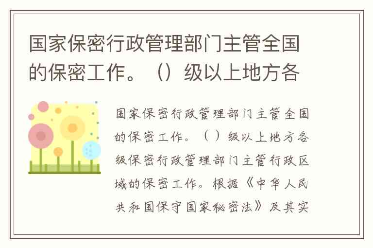 国家保密行政管理部门主管全国的保密工作。()级以上地方各级保密行政管理部门主管行政区域的保密工作。