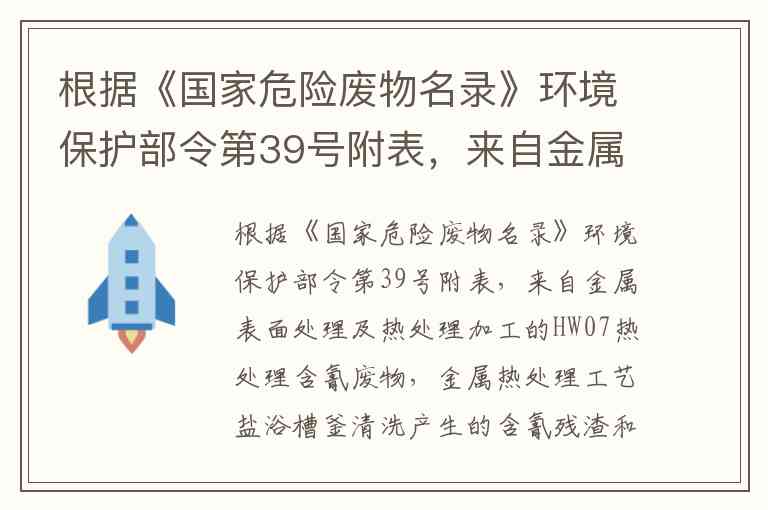 《国家危险废物名录》中HW07热处理含氰废物的危险特性代码需结合多份文件确认: