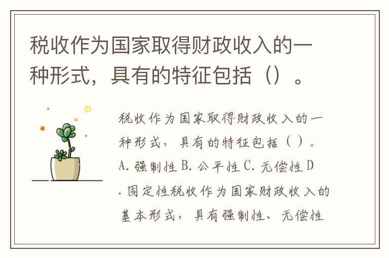 税收作为国家财政收入的基本形式,具有强制性、无偿性和固定性三大特征。强制性体现为