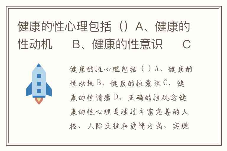 健康的性心理包括()A、健康的性动机 B、健康的性意识 C、健康的性情感 D、正确的性观念