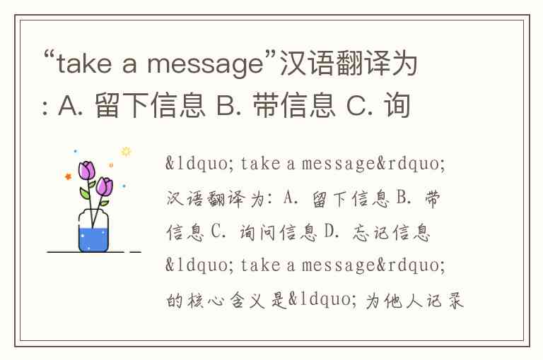 “take a message”汉语翻译为: A. 留下信息 B. 带信息 C. 询问信息 D. 忘记信息