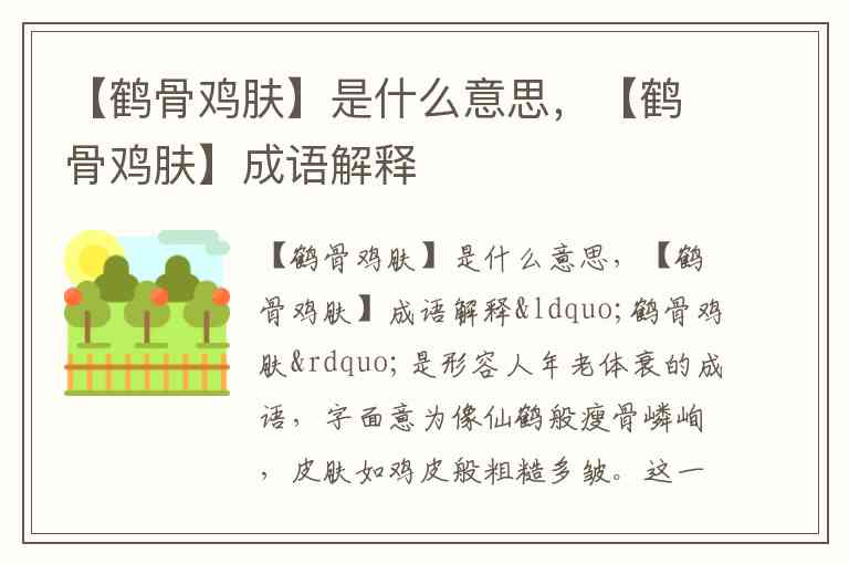 【鹤骨鸡肤】是什么意思,【鹤骨鸡肤】成语解释