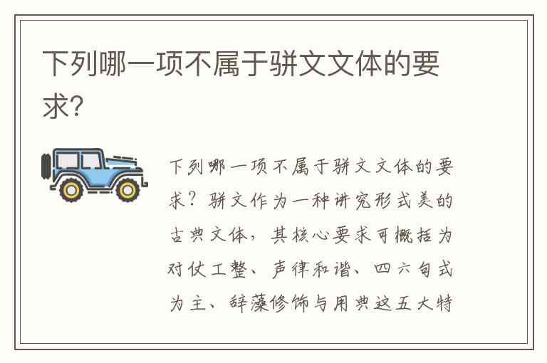 骈文作为一种讲究形式美的古典文体,其核心要求可概括为对仗工整、声律和谐、四六句式为主、辞藻修饰与用典这五大特征。要判断某一要素是否属于骈文要求,需结合这些核心规范分析。