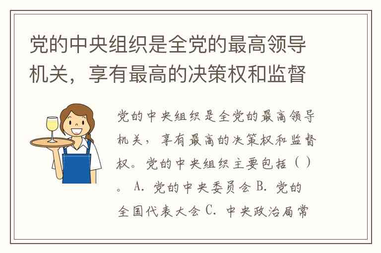 党的中央组织是全党的最高领导机关,享有最高的决策权和监督权。党的中央组织主要包括()。 A. 党的中央委员会 B. 党的全国代表大会 C. 中央政治局常务委员会办事机构 D. 中央政治局常务委员会 E. 中央政治局