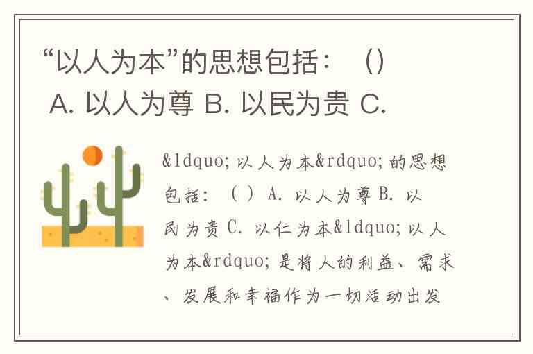 “以人为本”的思想包括:() A. 以人为尊 B. 以民为贵 C. 以仁为本