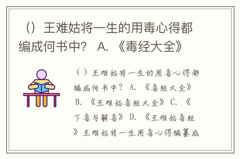 ()王难姑将一生的用毒心得都编成何书中? A. 《毒经大全》 B. 《王难姑毒经大全》 C. 《下毒与解毒》 D. 《王难姑毒经》
