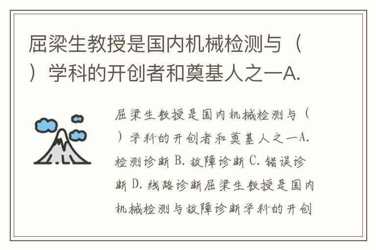 屈梁生教授是国内机械检测与()学科的开创者和奠基人之一A.检测诊断 B.故障诊断 C.错误诊断 D.线路诊断