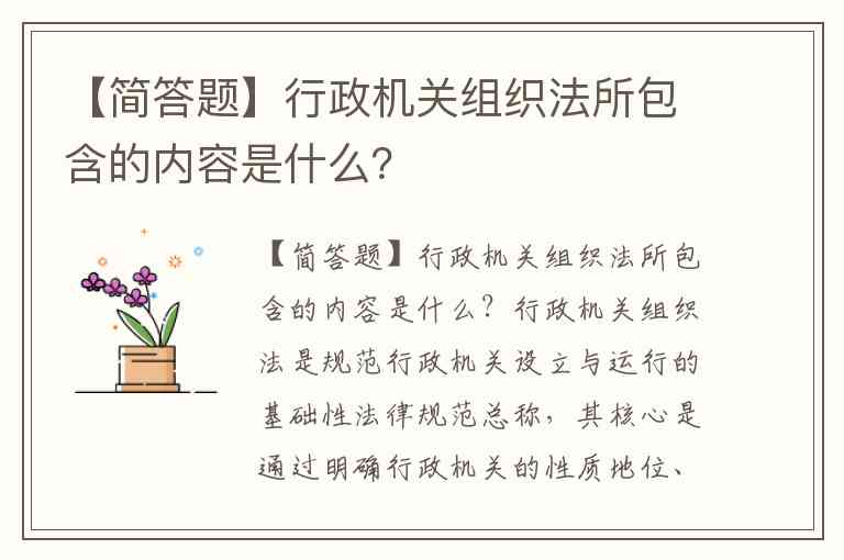 行政机关组织法是规范行政机关设立与运行的基础性法律规范总称,其核心是通过明确行政机关的性质地位、职权配置、机构设置及运行规则,实现行政权力的制度化与法治化。从我国现行法律体系看,其内容可概括为五大核心要素: