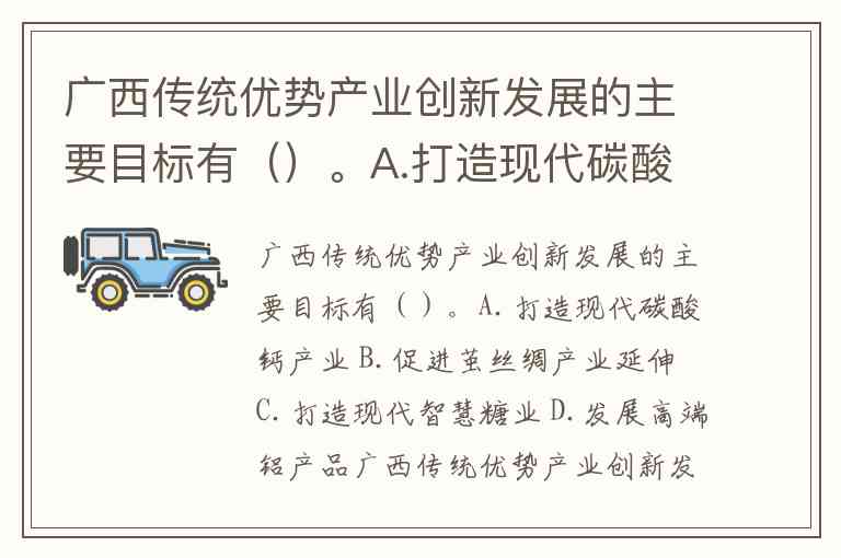 广西传统优势产业创新发展的主要目标有()。A.打造现代碳酸钙产业 B.促进茧丝绸产业延伸 C.打造现代智慧糖业 D.发展高端铝产品