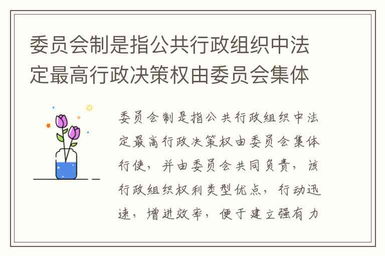 委员会制是指公共行政组织中法定最高行政决策权由委员会集体行使,并由委员会共同负责,该行政组织权利类型优点,行动迅速,增进效率,便于建立强有力的指挥系统。( ) A. 正确 B. 错误