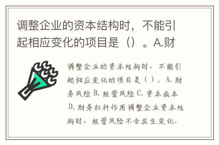 调整企业的资本结构时,不能引起相应变化的项目是()。A.财务风险 B.经营风险 C.资本成本 D.财务杠杆作用