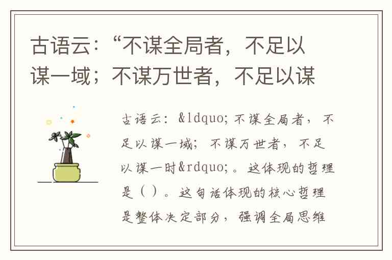 古语云:“不谋全局者,不足以谋一域;不谋万世者,不足以谋一时”。这体现的哲理是()。