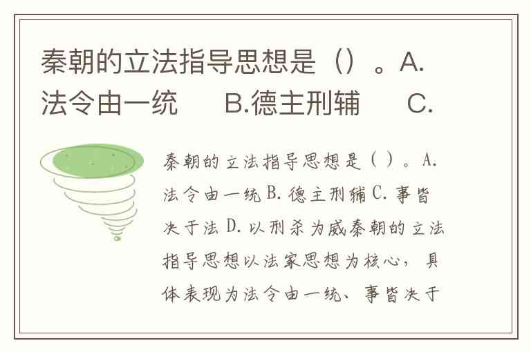 秦朝的立法指导思想是()。A.法令由一统 B.德主刑辅 C.事皆决于法 D.以刑杀为威