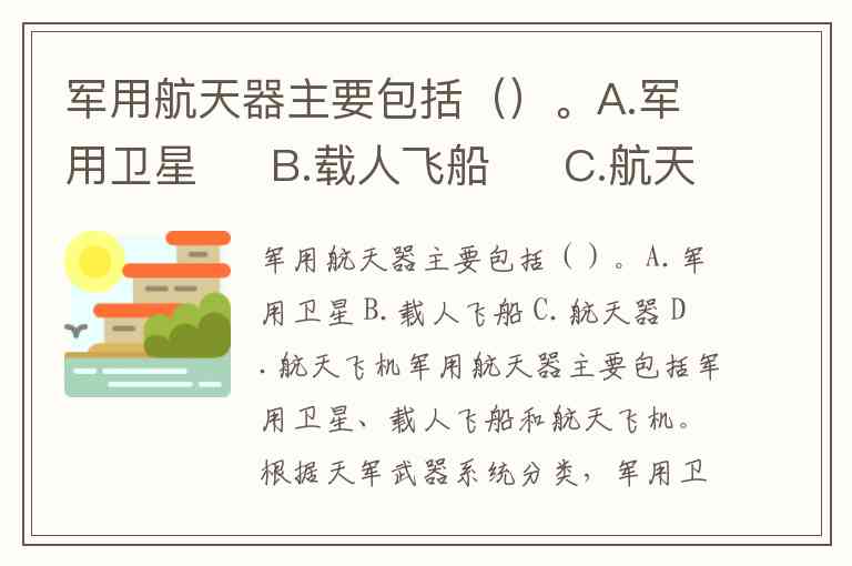 军用航天器主要包括()。A.军用卫星 B.载人飞船 C.航天器 D.航天飞机