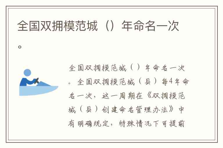 全国双拥模范城()年命名一次。
