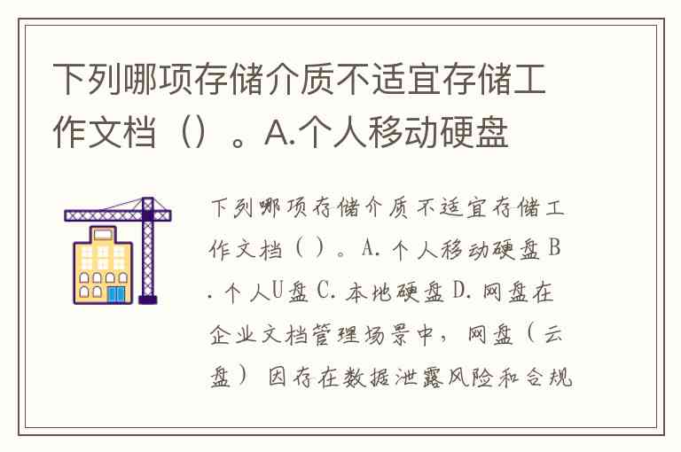 下列哪项存储介质不适宜存储工作文档()。A.个人移动硬盘 B.个人U盘 C.本地硬盘 D.网盘