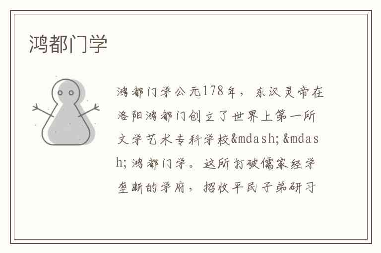 公元178年,东汉灵帝在洛阳鸿都门创立了世界上第一所文学艺术专科学校——鸿都门学。这所打破儒家经学垄断的学府,招收平民子弟研习辞赋、书画、尺牍等技艺,毕业生甚至能获得刺史、太守等高官职位,堪称古代教育史上的"艺术革命"。