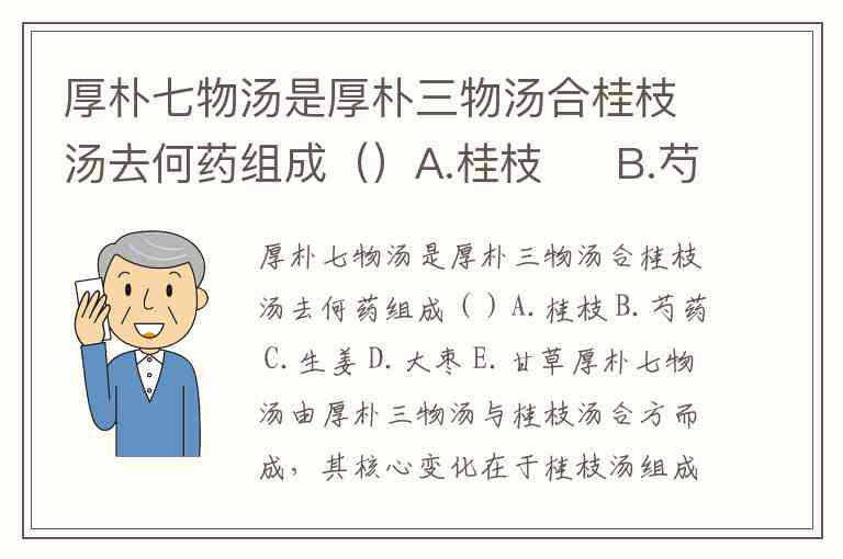 厚朴七物汤是厚朴三物汤合桂枝汤去何药组成()A.桂枝 B.芍药 C.生姜 D.大枣 E.甘草
