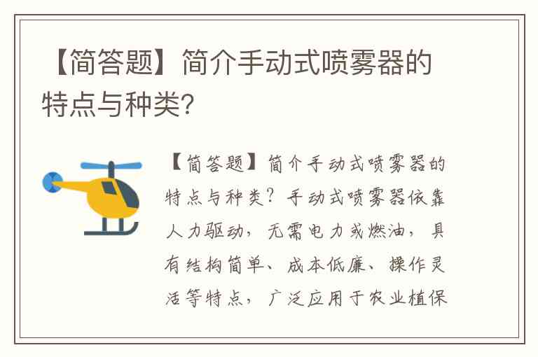 通过手动加压使药液形成压力差,经喷头雾化喷出,是最常见的类型。